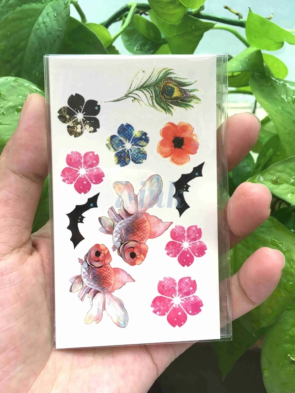 Waterproof Temporary Tattoo sticker 3D cute goldfish feather flower tattoo Water Transfer fake tattoo 10.5*6 cm for kids adults