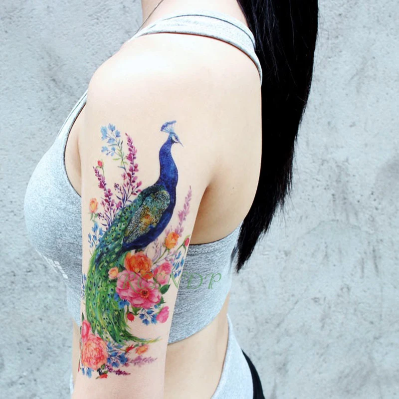 Waterproof Temporary Tattoo Sticker peacock flower fake tatto Cool flash tatoo tatouage temporaire body art for girl women men