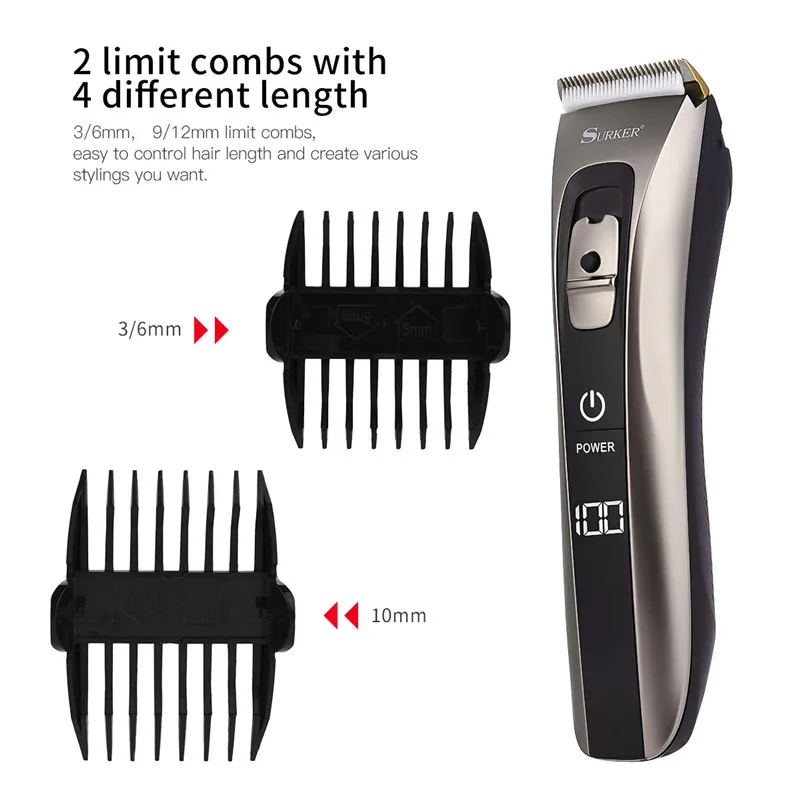 Waterproof Hair Trimmer Ceramic Titanium Alloy Blade Hair Clipper LED Display USB Rechargeable Electric Hair Cutting Barber