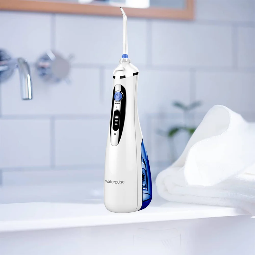 Waterpulse V400P Portable Irrigator Dental Water Flosser 3 Pressure Modes 240 ml Oral Irrigator With 4 Tips White Dental Flosser