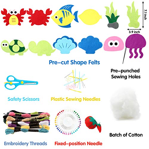 WATINC 6 Confezione da Cucito in Feltro per Bambini, Giocattoli di Testa di Animale della Vita marina per Principianti Divertenti Ornamenti da Cucire Regali di Compleanno con DIY Portachiavi Strumenti