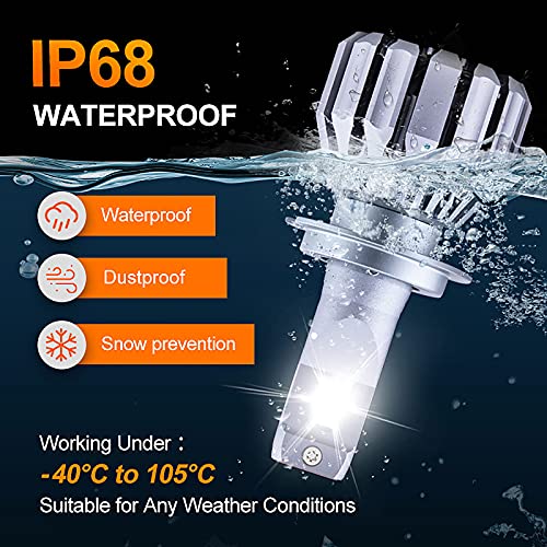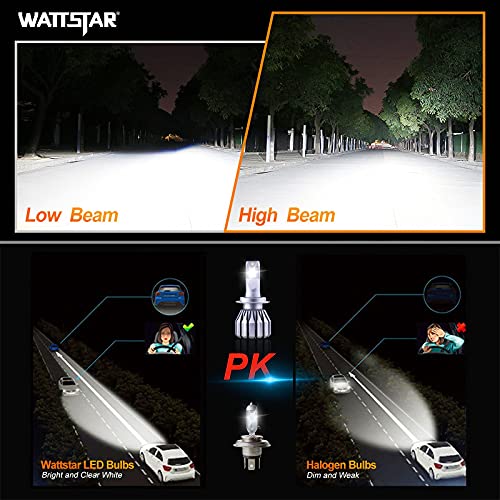 Wattstar Kit conversione lampadine LED, 64W Super Bright Hi/Lo Lampada frontale con ventola, IP67 Flip Chip 9600 LM 6500K Bianco 2-Pack (, S19-H7(CANBUS))... (S19-H7)