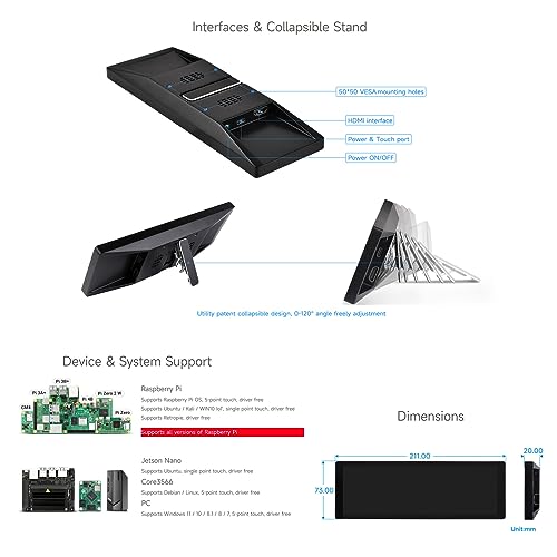 Support Plug & Play Without Driver. When used for Raspberry Pi, it supports Raspberry Pi OS/Ubuntu/Kali/Retropie. When used for Jetson Nano, it supports Ubuntu. When working as a computer monitor, it supports Windows 11 / 10 /8.1 / 8 /7 without a driver. Support backlight control for power saving