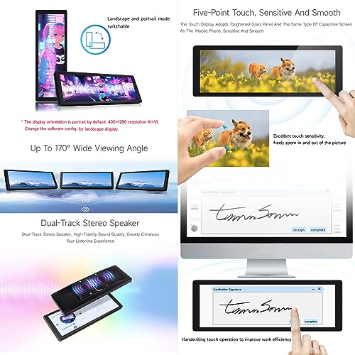 This 7.9-inch IPS display with a hardware resolution of 400 x 1280 (H x V). Zinc alloy case, toughened glass panel with up to 6H hardness. Can be used as a PC Side Monitor or a Machine Monitoring Screen.(Note: This screen defaults to vertical display, you can modify the software to set it to horizontal display)