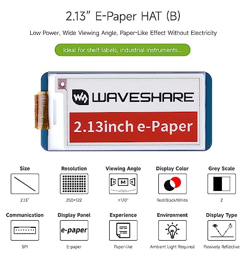 Waveshare 2.9Inch E-Paper Display Module(B) 296x128 Resolution 3.3v/5v E-Ink Electronic Paper Screen,Red Black White Three-Color Display for Raspberry Pi/Jetson Nano/Arduino/STM32