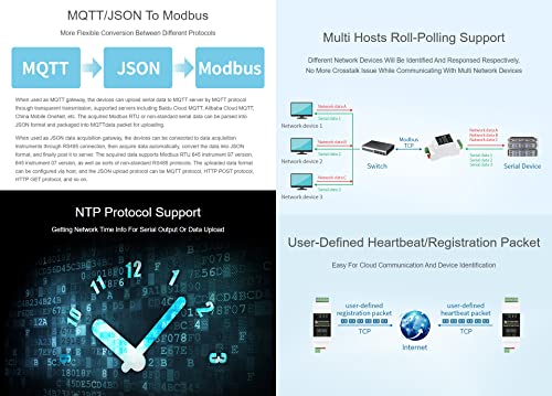 This is a RS485 device data acquisitor / IoT gateway designed for industrial environment. It combines multi functions in one, including serial server, Modbus gateway, MQTT gateway, RS485 to JSON, etc.