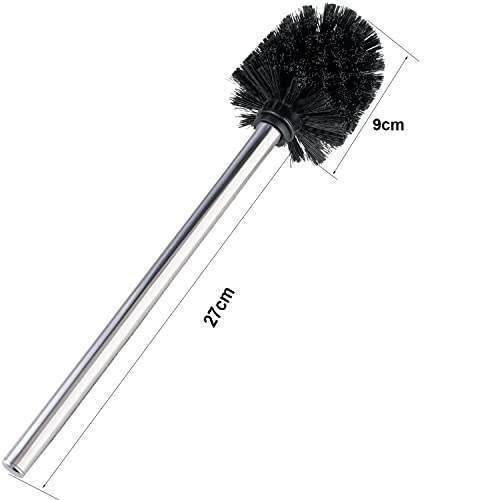 WAVEWO Set di 2 Scopino WC Nero, Spazzolino con Manico Lungo In Acciaio Inox, Spazzole Per WC Dal Design Semplice e Classico con 3 Testine di Ricambio ø 7 CM