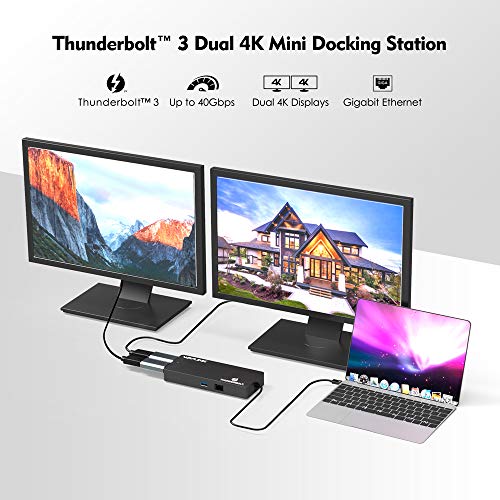 WAVLINK Mini docking station Thunderbolt 3 con doppia uscita display (DisplayPort o HDMI), USB 3.0, Gigabit Ethernet per MacBook pro Thunderbolt 3 e alcuni PC Windows