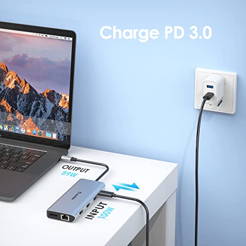 ** Rete cablata veloce e ricarica PD 100 W: accesso stabile istantaneo a Internet con porta Ethernet 1000 M (supporta velocità 10/100/1000 Mbps.) Con una porta di ricarica PD3.0 da 100 W, questa docking station a 13 porte fornisce fino a Fornitura di alimentazione da 89 W al laptop (11 W ad altri dispositivi). Nota: la porta di ricarica PD di tipo C si applica solo ai dispositivi con protocollo PD.