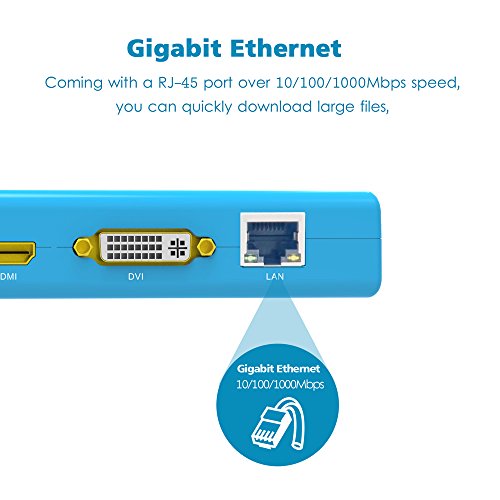 WAVLINK - Docking station universale USB 3.0 con doppio display video uscite HDMI/DVI/VGA fino a 2048x1152, Gigabit Ethernet, 6 porte USB, uscita audio/ingresso per laptop, Ultrabook e PC