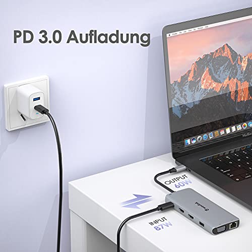 Ampia compatibilità: un hub di espansione USB C per MacBook Apple, MacBook Pro 2016/2017/2018/2019/2020, Apple iMac/iMac Pro (21,5 pollici, 27 pollici), Google Chromebook Pixel, Huawei MateBook, Huawei MateBook Pro, Dell, Surface Book2, HP, Lenovo e Samsung S9, S9 Plus, S8, S8 Plus, Note 9, Note 8, versioni recenti dei telefoni Huawei e molti altri computer portatili di tipo C.