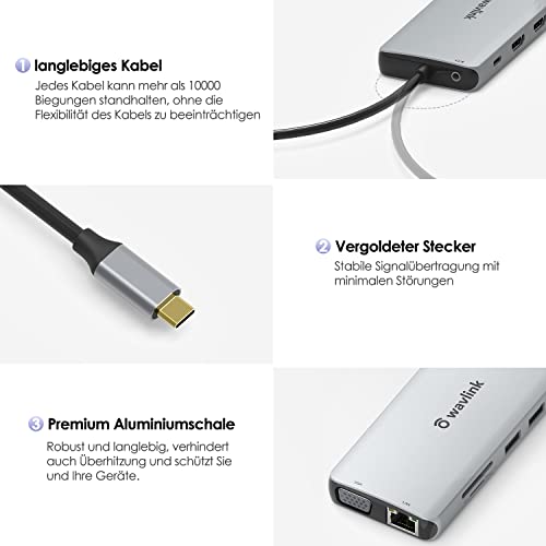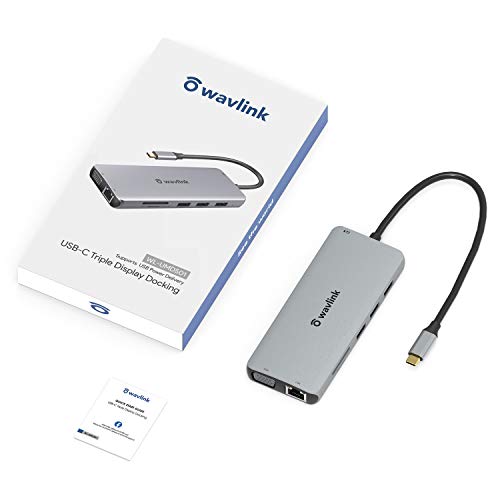 WAVLINK - Docking station hub USB-C 12 in 1, supporta tripla uscita display (2 HDMI e VGA), ricarica PD3.0 da 60 W, Ethernet, lettore di schede SD, audio, 4 porte USB, per Windows o macOS