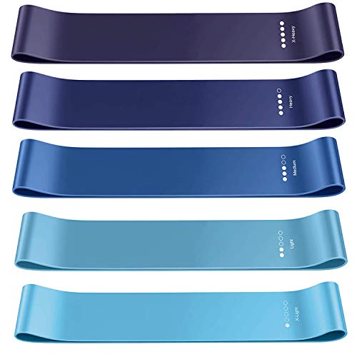 Wayexe Elastici Fitness Set di 5 Bandas Elasticas Fasce Elastiche di Resistenza di Lattice Naturale con Istruzioni e Borsa Elastici Fitness per Crossfit Yoga Pilate (Blu)