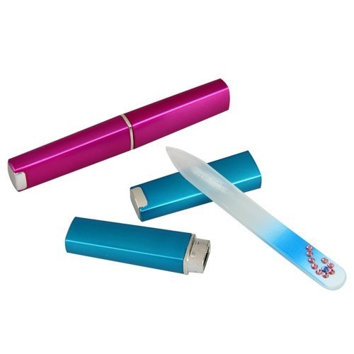 Waygo 2 colori professionale Crystal Glass nail file con custodia rigida