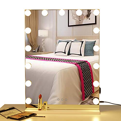 Lampadine dimmerabili: specchio da 48 x 53 cm e 15 lampadine dimmerabili offrono un'immagine ben illuminata e non distorta. Le lampade possono essere regolate e regolate i colori, non abbagliano. Livello di luminosità sufficiente per il trucco.
