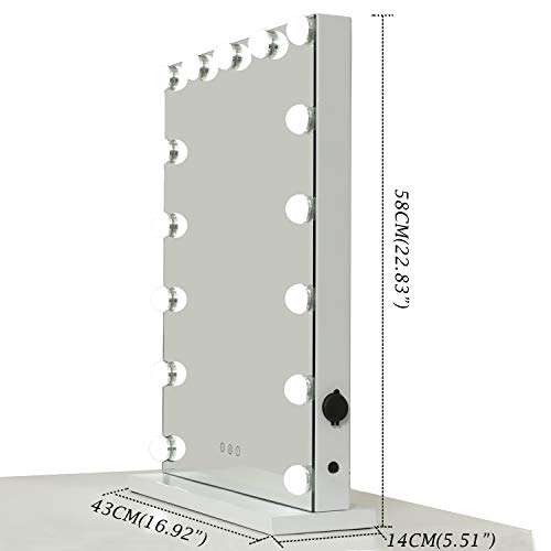 WAYKING Specchio per il trucco Hollywood luci a LED, controllo touch, specchio per il trucco grande con luci a LED attenuate, specchio per il trucco illuminato bianco (46_x_58_cm)