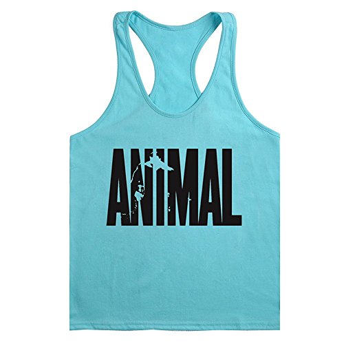 WAYLONGPLUS, canottiera da uomo per allenamento in palestra, per bodybuilding, con stampata la scritta in lingua inglese "animal" lightblue-black M