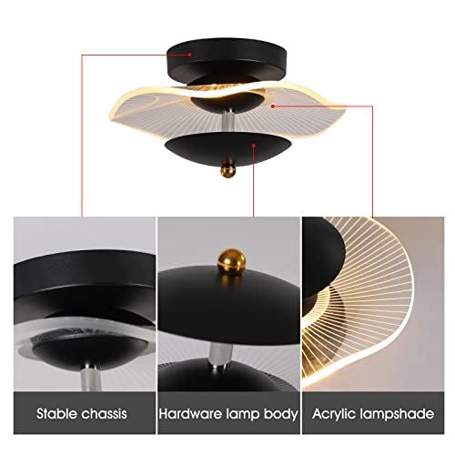 WayLuoung Plafoniera a LED, Lampada da soffitto 6W Lampada da soffitto moderna a LED in acrilico nero per scale del balcone del corridoio, diametro 23 cm, dimmerabile 3000K/4000K/6000K
