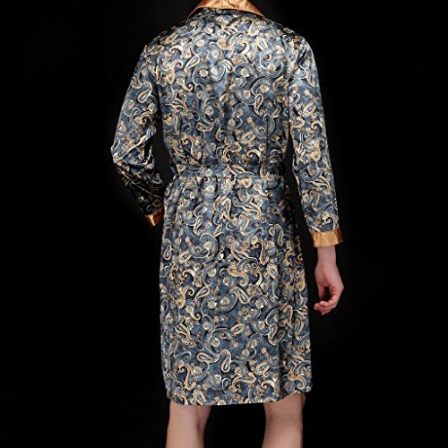 Waymoda Men's Luxury Silky Satin Evening Dressing Gown, Male Classic Elegant Paisley Pattern Kimono Wrap Robe, 3 Sizes Optional - Long Style