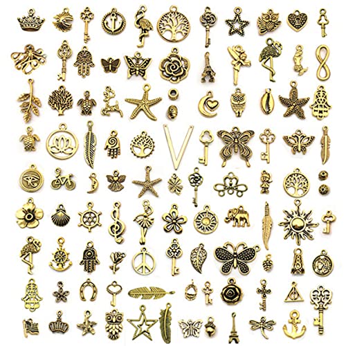 La confezione include: contiene 100 accessori per braccialetti con ciondoli in bronzo antico scheletro, 100 diversi modelli di gioielli alla moda, ti consente di creare liberamente orecchini fai-da-te.
