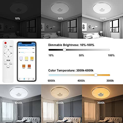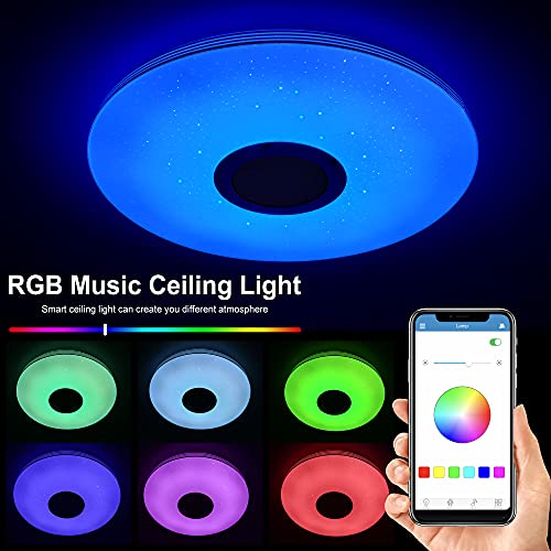 Wayrank Plafoniera LED RGB con Altoparlante Bluetooth,36W Lampada da Soffitto Dimmerabile con Telecomando e Controllo APP, Lampadario per la Cameretta Cucina Soggiorno
