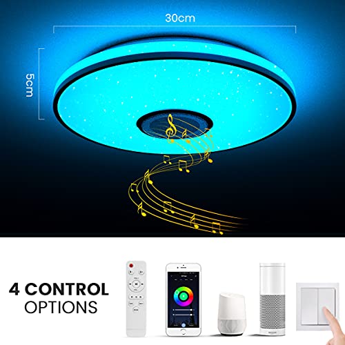 Wayrank Plafoniera LED con Altoparlante Bluetooth, Wifi RGB Lampada da Soffitto con Telecomando e Controllo APP, Dimmerabile Lampadario Moderno Compatibile per ALEXA Google Home