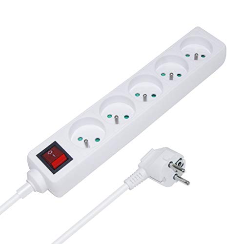 - Multipresa elettrica con interruttore a 5 prese con cavo da 1,50 m bianco