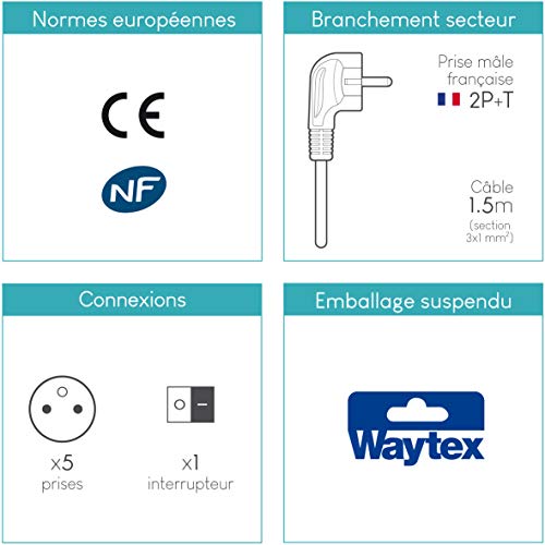 Waytex 52115 Ciabatta Multipresa 5 Prese, con Interruttore, Cavo 1.5 m / 3x1.5mm² H05VV-F, Standard Europeo, colore: Bianco [Importato da Francia]