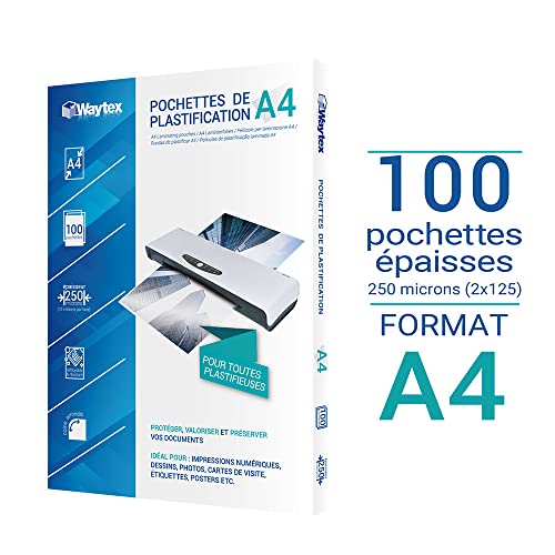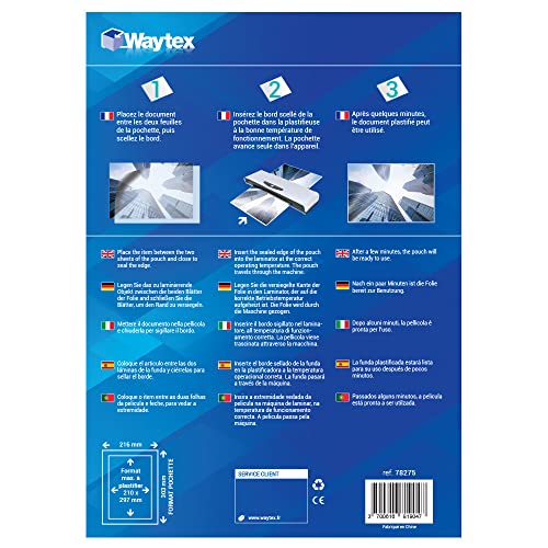 WAYTEX 78275 - Buste per plastificazione, formato A4, 125 micron, confezione da 100