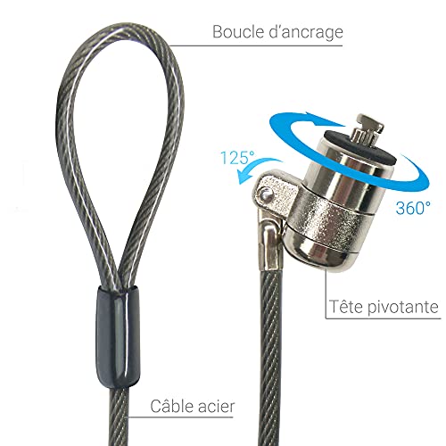 ✔️ 【Cavo ad alta resistenza】 Il cavo in acciaio ad alta sicurezza si avvolge intorno al piede della scrivania o su un punto di ancoraggio solido, grazie alla sua estremità a forma di fibbia. Lunghezza del cavo: 1,80 m.