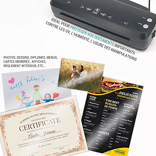 Confezione da 100 buste di plastificazione spesse, formato A4, 125 micron, finitura lucida trasparente, 21 x 29,7 cm.