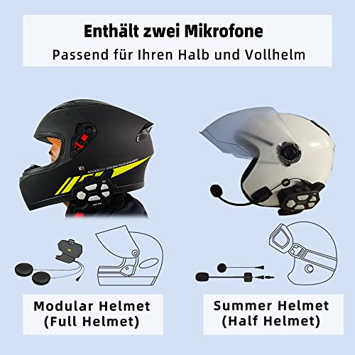 WAYXIN R5 1000m Interfono Moto Bluetooth Coppia Auricolare Bluetooth Casco Moto per 2 Persone,10h Conversazione Continua,Interfono Casco Moto con Radio,Funzione di Chiamata Vocale Siri,Doppio