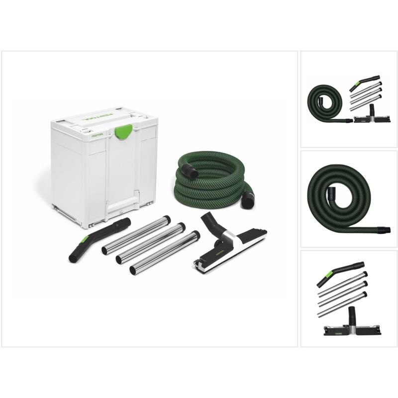 Dotazione: - 1x Festool Tubo flessibile liscio D 36 x 3,5 m AS/CTR ( 204924 ) - 1x Festool Tubo curvo D 36 HR-K AS ( 203129 ) - 3x Prolunga in acciaio Festool D 36 VR-M 3x ( 452902 ) - 1x Ugello per pavimento Festool D 36 BD 370 ( 452908 ) - 1x Valigetta Festool Systainer SYS3 M 437 ( 204845 ) Descrizione prodotto: Questo set di pulizia universale di Festool è particolarmente adatto all'uso universale nell'artigianato e nell'industria. Con il tubo di aspirazione D36, si ottiene un collegamento ideale per un'aspirazione potente. Si trova tutto insieme nel SYS3 M 437 Systainer. Il tubo di aspirazione D 36 x 3,5 m AS/CTR con una lunghezza di 3,5 metri e un diametro di 36 millimetri è resistente alla temperatura, resiste a temperature fino a +70 °C e ha un equalizzatore rotante e un manicotto di collegamento. Inoltre, il tubo è dotato di un chip RFID per il riconoscimento automatico del tubo di aspirazione ed è anche antistatico. Il tubo manuale D 36 HR-K AS con un diametro di 36