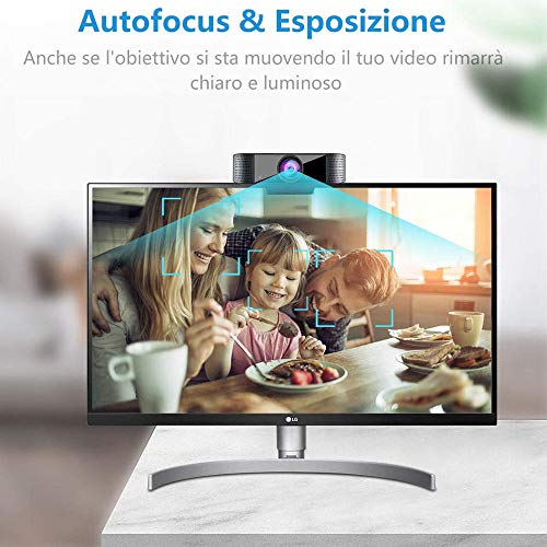 【Microfono a riduzione del rumore】 MIC stereo digitale incorporato con webcam con microfono con riduzione automatica del rumore rende il suono più puro e più chiaro, alza la voce anche a 10 piedi di distanza per assicurarti che tutti sentano il vero te. La webcam autofocus 1080p a fuoco fisso cattura l'alta definizione video con grandangolo fino a 110 °, ideale per webinar, videoconferenza, streaming live, ecc.