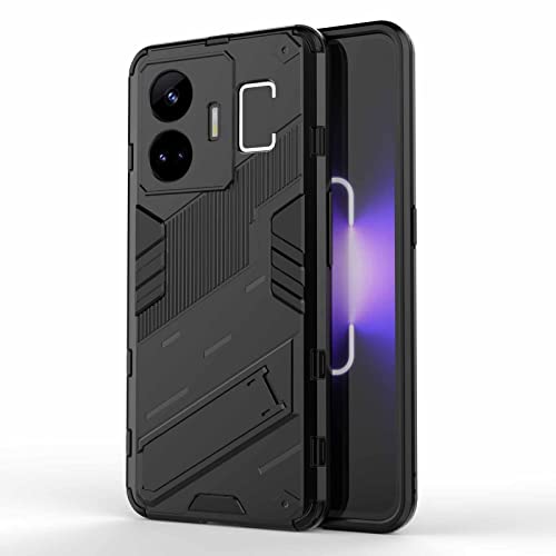 WBWONE Cover per Realme GT Neo5 (GT Neo 5) / GT3 / GT 3, TPU Silicone e PC Antiurto Custodia, Protettiva Case con Supporto Nascosto, Stile Punk Antiscivolo Protezione Shell, Nero