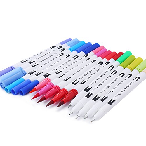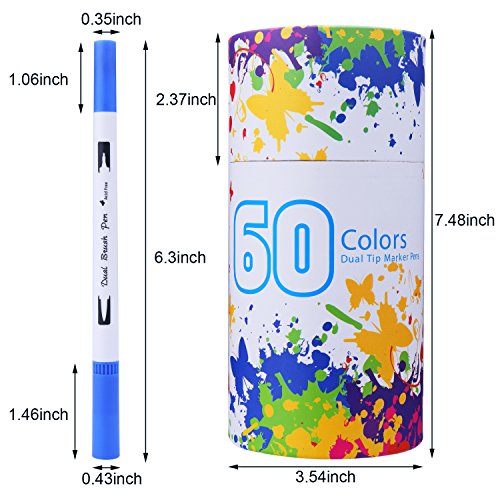 60 colori vibranti: queste penne a doppia marcatura hanno 60 colori vivaci con entrambe le punte a spazzola e le punte delle fodere sottili. Permette di scrivere sia linee sottili che spesse.
