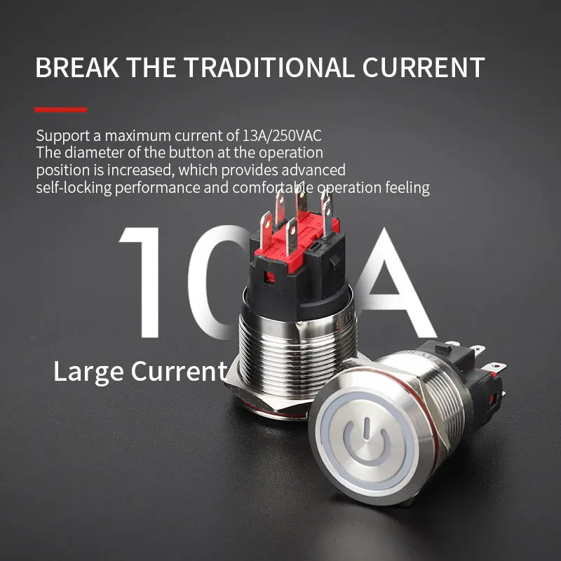 WD22mm Waterproof Ip67 10A Ring Symbol Style Light Metal Push Button Switch