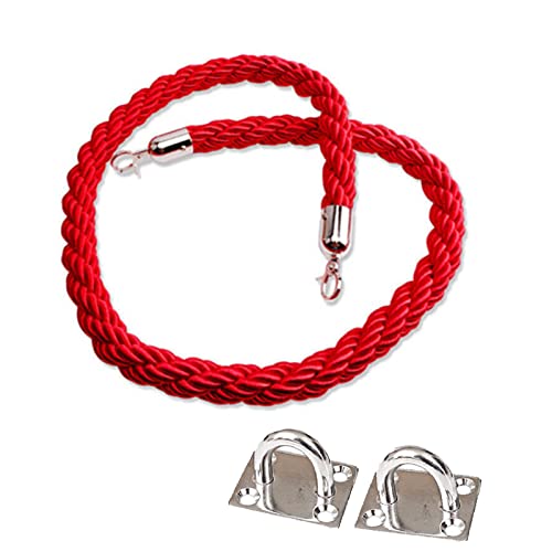 WDJBPSH Corda Barriera Rosso Contorto Nylon Corda di Canapa con 2 Kit di Ganci da Parete, Impiccagione Corda VIP per Hotel/Ristorante/Cinema/Reception (Size: 6ft/185cm)