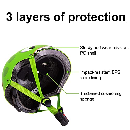 MIGLIORE PROTEZIONE PER I BAMBINI: EPS (interno) + ABS (esterno) di alta qualità, sicurezza garantita, senza BPA. Questo casco per bambini è comodo, morbido e traspirante e può essere rimosso per una facile pulizia.