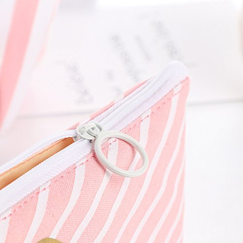 Wdoit tela studente di matita a righe rosa creativo DOT modello con cerniera Lady makeup bag Small item Storage box, stile casuale), Tela, 4PCS, 20*8.5cm