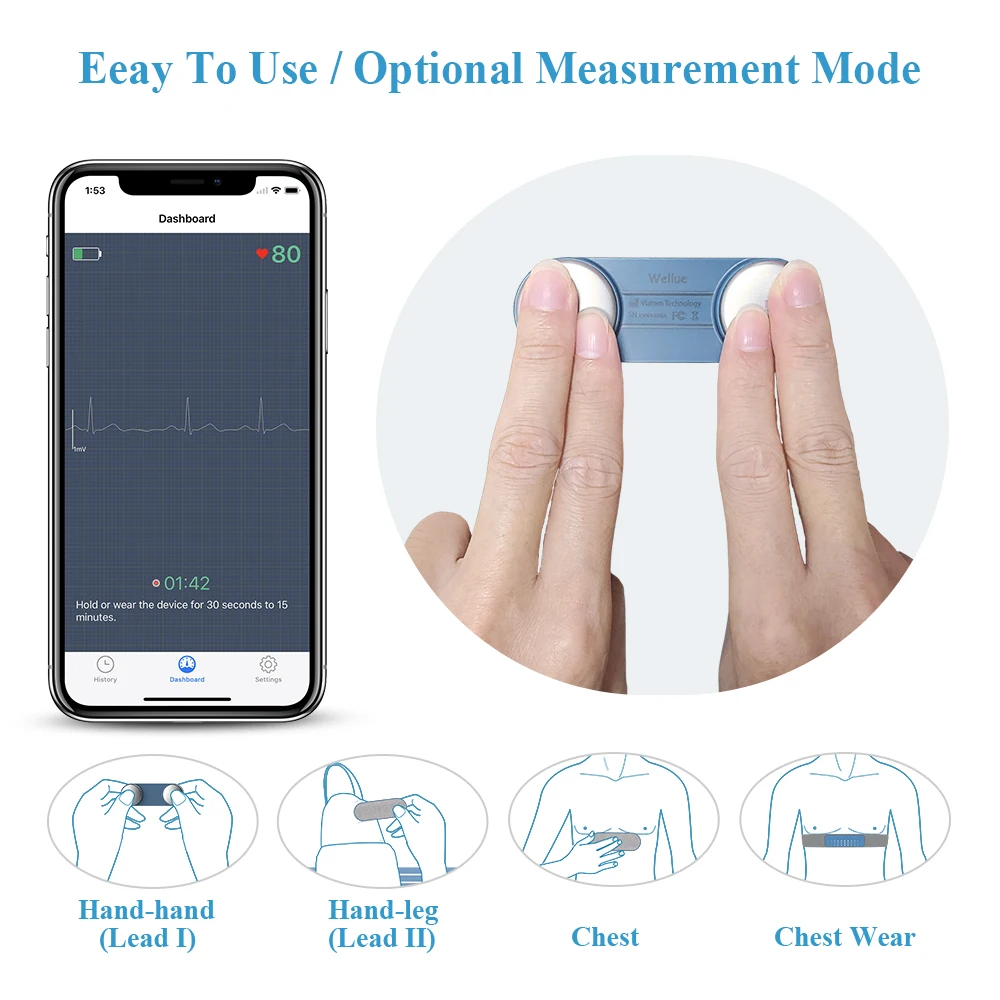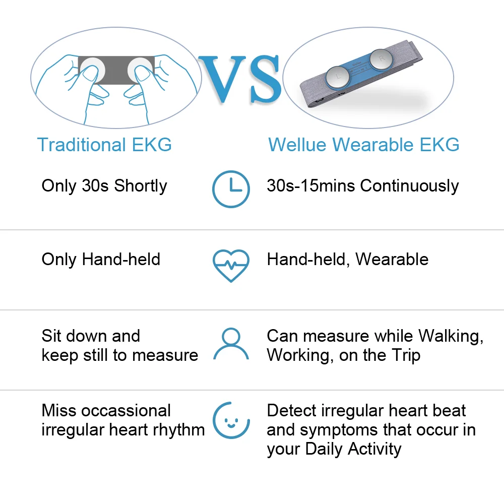 Wearable Chest Strap ECG/EKG Monitor 30s-15min Recording Free App PDF Report Wireless Heart Rate Monitor Wellue DuoEK