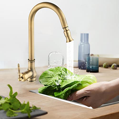 Weare Home Rubinetto Cucina Ottone Antico, Miscelatore Cucina Con Becco Girevole a 360 Gradi Monocomando e Fredda e Calda Regolabile Rubinetti della cucina Lavello,3/8 pollici