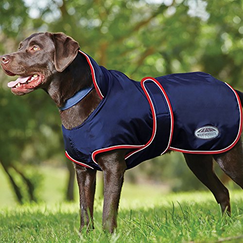 Weatherbeeta, giacca anti vento impermeabile foderata in pile per cani, dotata di fascia in corrispondenza dell'addome, colore blu/rosso