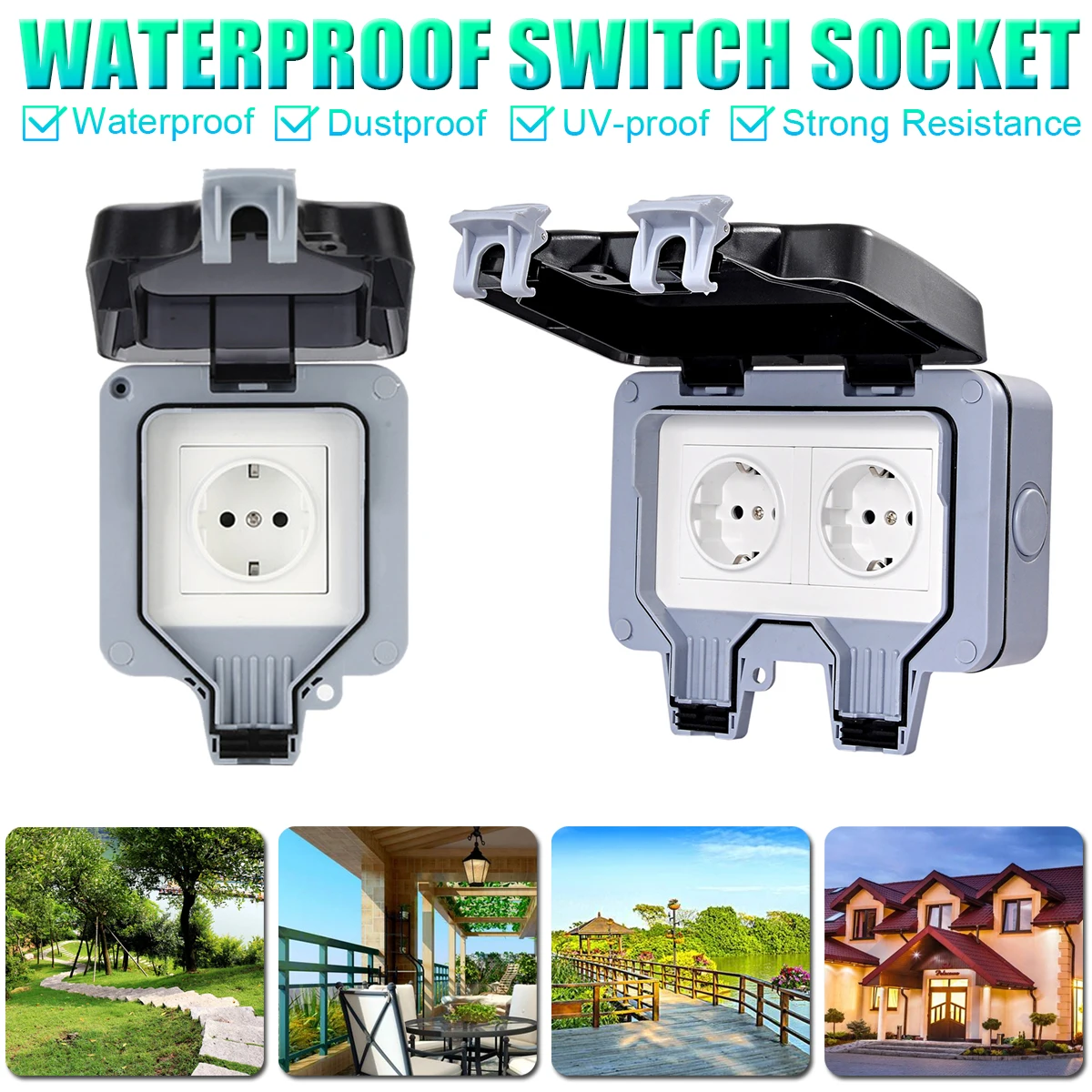 IP66 Weatherproof Waterproof Outdoor Wall Power Socket Box16A Single/Double EU Standard Electrical Outlet Grounded AC 250V