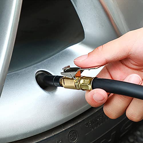Fodera in ottone: con clip per valvola in ottone montato, adattatore portatile per mandrino di gonfiaggio pneumatici, può essere collegato alla valvola dello pneumatico, facile e veloce per ottenere un gonfiaggio a mani libere.