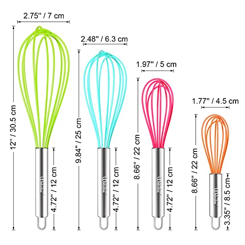Webake Frusta in silicone da cucina a palloncino 4 pezzi da 6 '' 8 '' 10 '' 12 '' resistente al calore mini frusta frusta frusta per frullare, sbattere, mescolare