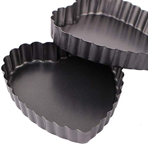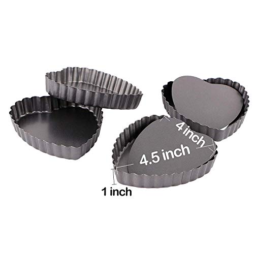 Webake 4 Pollici Mini Stampo Crostata Mini teglie a Forma di Cuore Stampo Torta Antiaderenti Quiche Tins con Fondo Rimovibile Set di 4