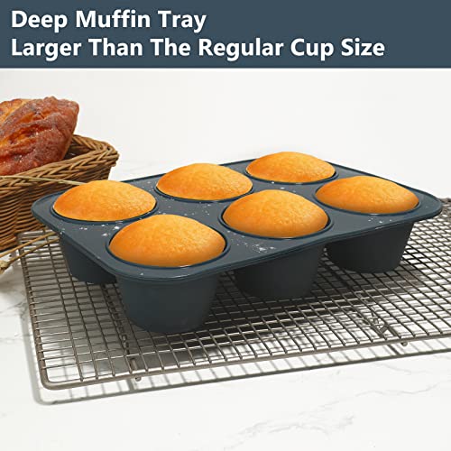 Forma alta per muffin: la teglia per muffin misura 27,8 x 19 x 5 cm, la punta è di 7,8 cm e il fondo è di 5 cm, profondità 5 cm. È più grande di altre teglie per muffin sul mercato. I nostri stampi per muffin sono più stabili grazie alla progettazione di connessione rinforzata tra i bicchieri sul retro e non diventano morbidi e deformabili rispetto agli altri concorrenti.