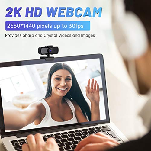Webcam Per PC, 2K 1440P Full HD Video Camera Webcam PC con Microfono Plug and Play USB Fotocamera FHD Laptop PC Portatile Streaming Web Camera per Video Games, Videochiamate, Conferenza, Studio