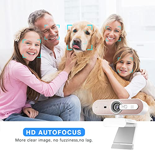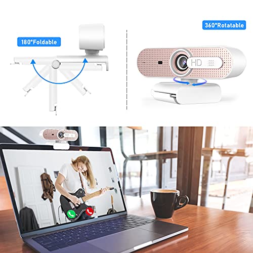 ASHU Webcam per computer USB 1080P con messa a fuoco automatica, privacy e doppio microfono per Skype, videochiamate, conferenze, registrazione, streaming, bianco e oro rosa